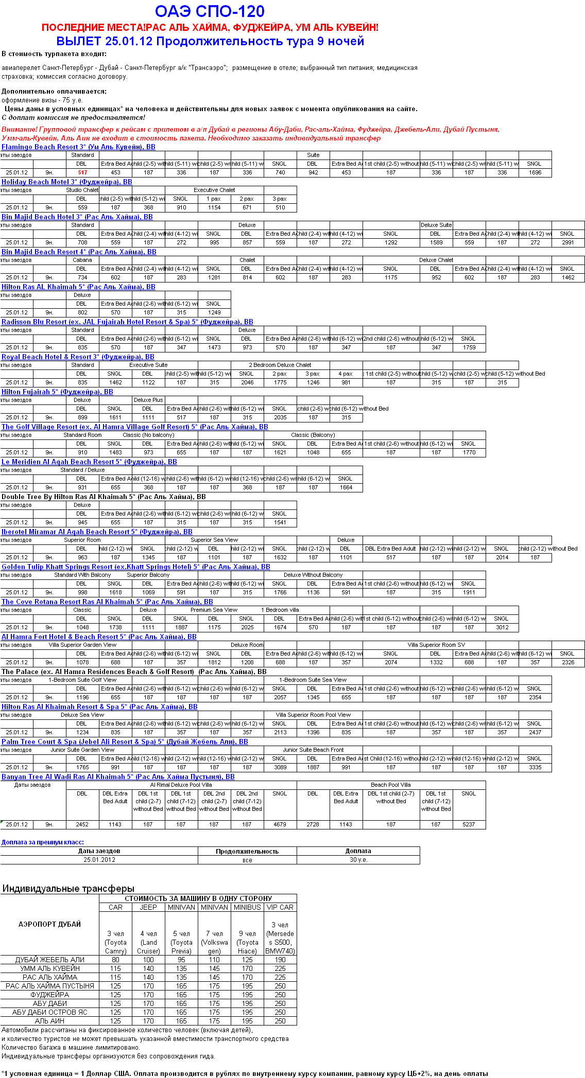 | 19 Янв 2012 | 12:57:06 | ОАЭ 25.01 на 9н . РАС АЛЬ ХАЙМА, ФУДЖЕЙРА, УМ АЛЬ КУВЕЙН от 517 У.Е от фирмы ЮЖНЫЙ КРЕСТ |