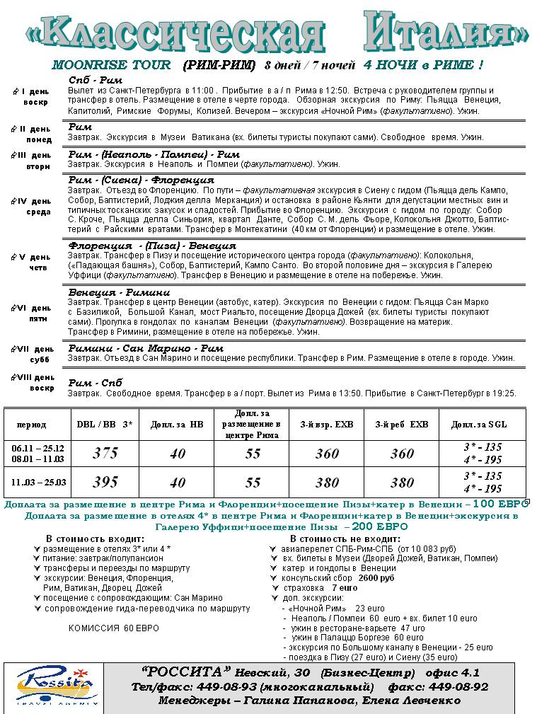 19 Янв 2012 17:31:27 ИТАЛИЯ 26.02-03.03 Moonrise Tour - ИЩЕМ ПАРУ от фирмы РОССИТА