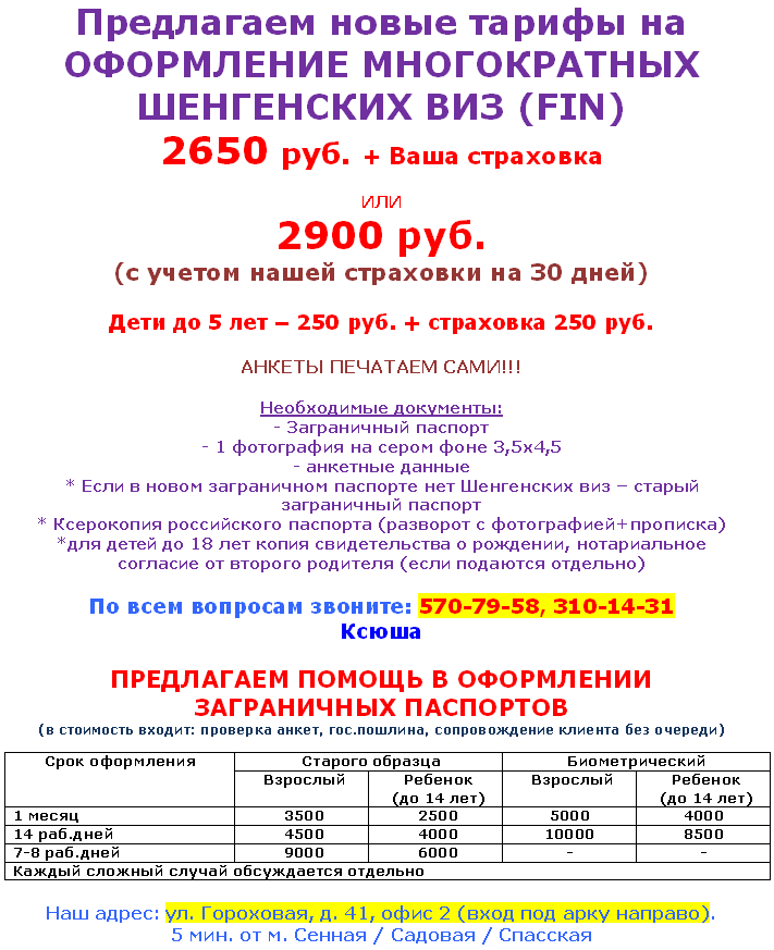 20 Янв 2012 14:13:28 ОФОРМЛЕНИЕ ШЕНГЕНА (FIN) и Загранпаспортов от фирмы ТВОЙ ТУР