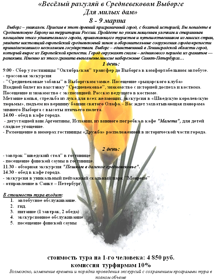 25 Янв 2012 12:38:31 РОССИЯ Средневековый Выборг для милых дам 08-09 марта от фирмы ЛАДЬЯ