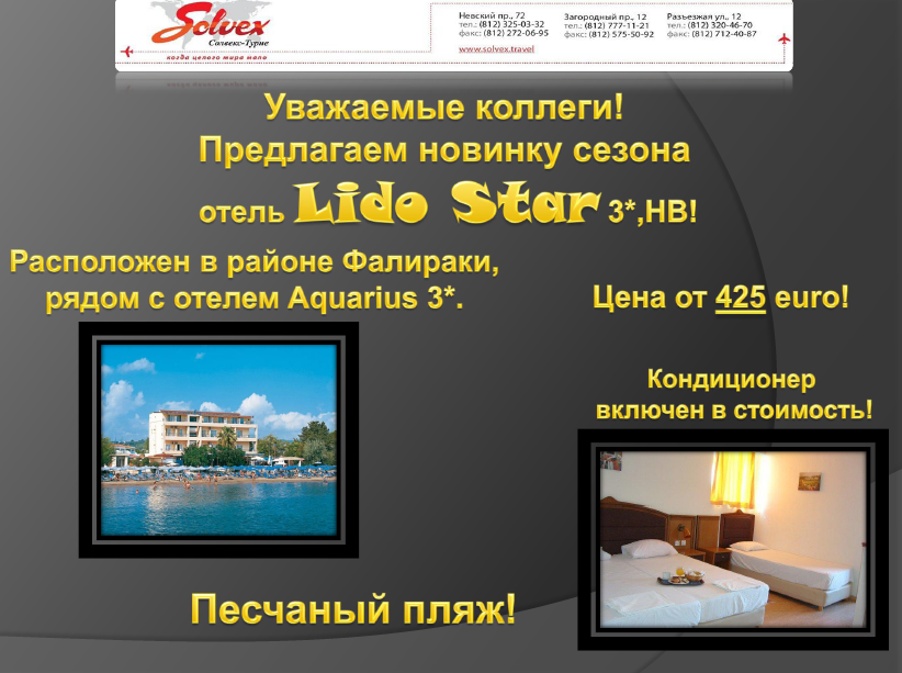 27 Янв 2012 18:14:27 ГРЕЦИЯ. РОДОС. НОВИНКА СЕЗОНА ОТЕЛЬ LIDO STAR 3*,HB! ЦЕНА ОТ 425 ЕВРО от фирмы СОЛВЕКС
