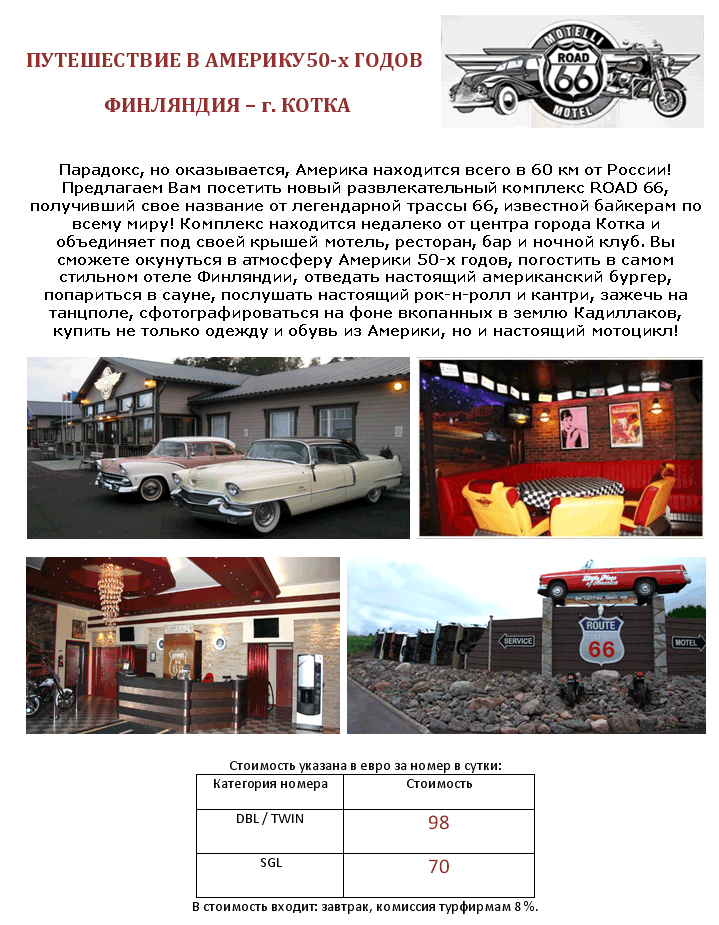 27 Янв 2012 18:19:07 ФИНЛЯНДИЯ - КОТКА - Развлекательный Комплекс ROAD 66 (путешествие в Америку 50-х годов) от фирмы ТВОЙ ТУР