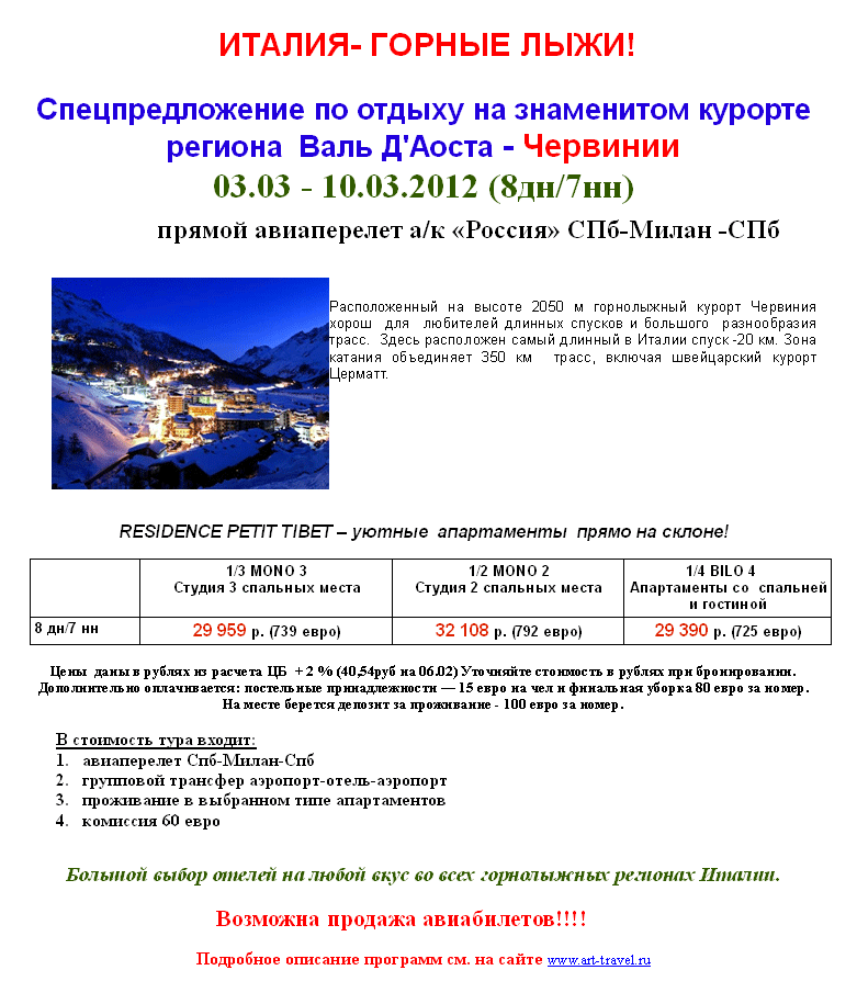 07 Фев 2012 11:36:01 ИТАЛИЯ. SPO 03.03.12 Червиния. от фирмы АРТ-ТРЕВЕЛ