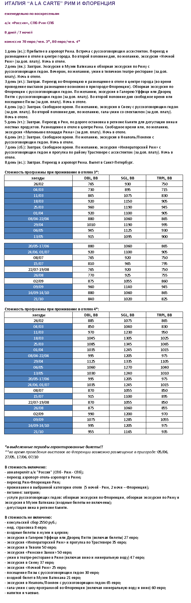 08 Фев 2012 17:36:51 ИТАЛИЯ a la carte Рим-Флоренция 8дн/7н от фирмы МЕРКУРИЙ