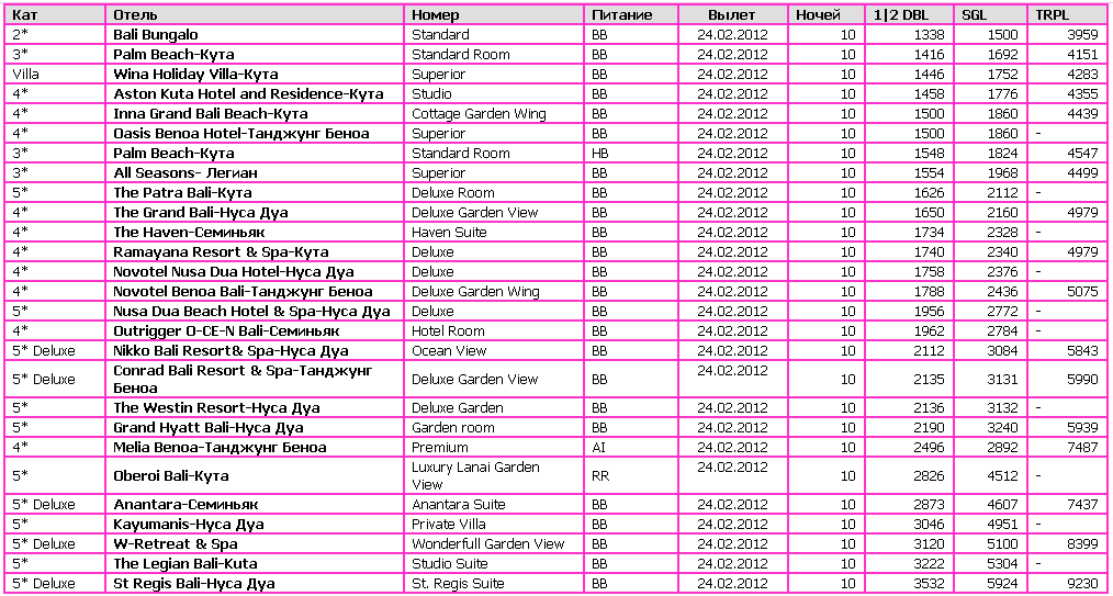 с Бали ? 17 $ (оплачивается в местной валюте); •дополнительные