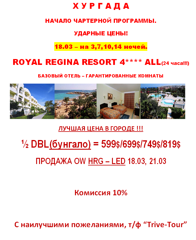 ЕГИПЕТ. ХУРГАДА - ГАРАНТИРОВАННЫЕ НОМЕРА от фирмы TRIVE ТУР |