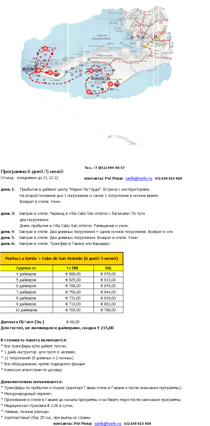 06 Мар 2012 13:14:30 КУБА Дайвинг программа (6д./5н.) от 700 евро от фирмы ISOLE TRAVEL SERVICE