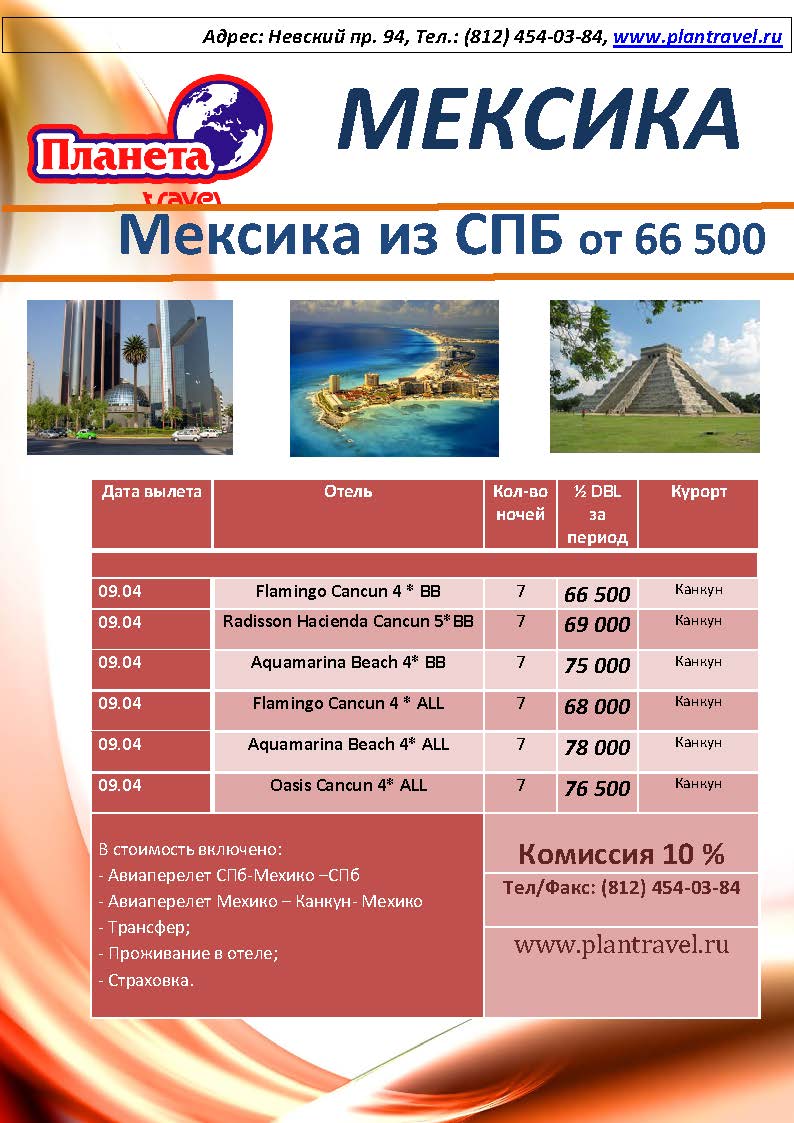 07 Мар 2012 14:21:22 МЕКСИКА из Спб от 66 500 руб! от фирмы ПЛАНЕТА TRAVEL