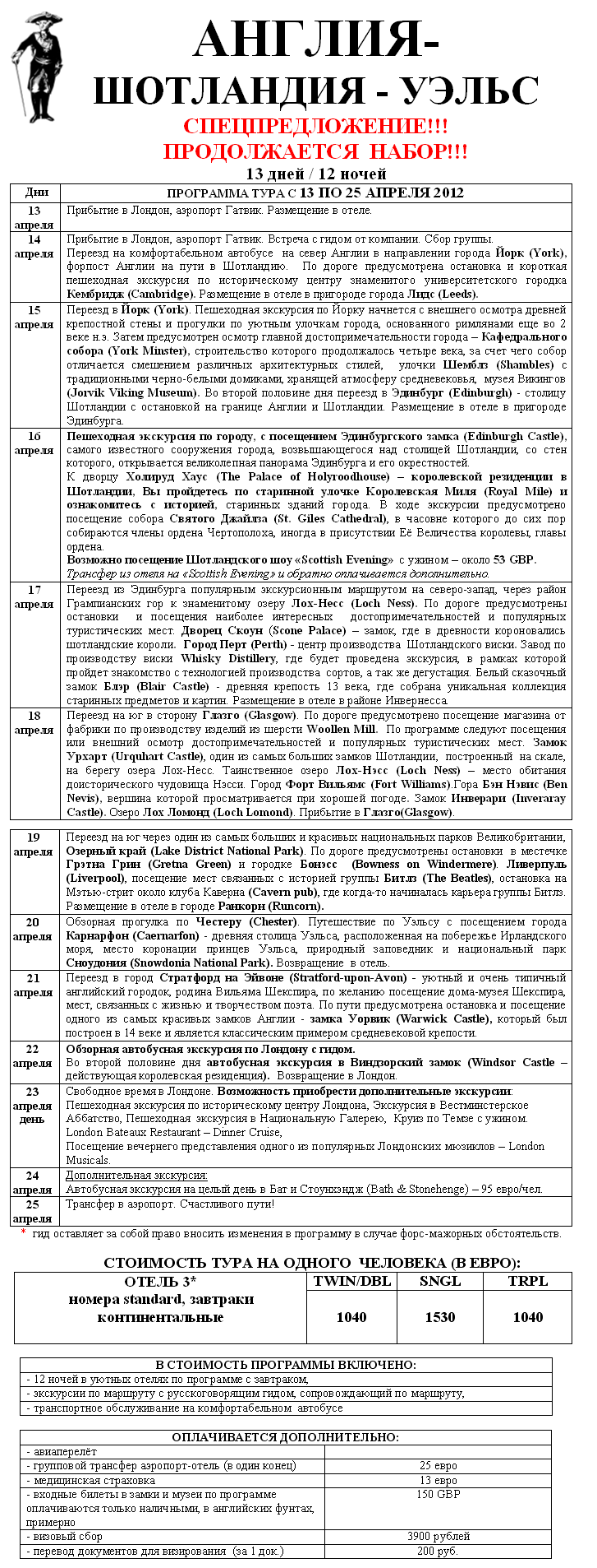 07 Мар 2012 15:27:26 АНГЛИЯ-ШОТЛАНДИЯ-УЭЛЬС 13.04-25.04 (13дн/12н) от фирмы ИМПЕРИАЛ