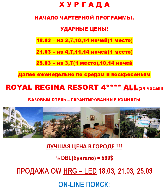 ЕГИПЕТ Хургада с 18.03 на 03, 07, 10, 14 ночей от фирмы TRIVE ТУР |