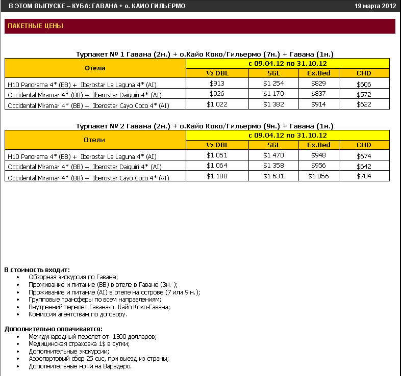 19 Мар 2012 13:34:33 КУБА - Гавана+ о. Кайо Коко/Гильермо от фирмы ISOLE TRAVEL SERVICE