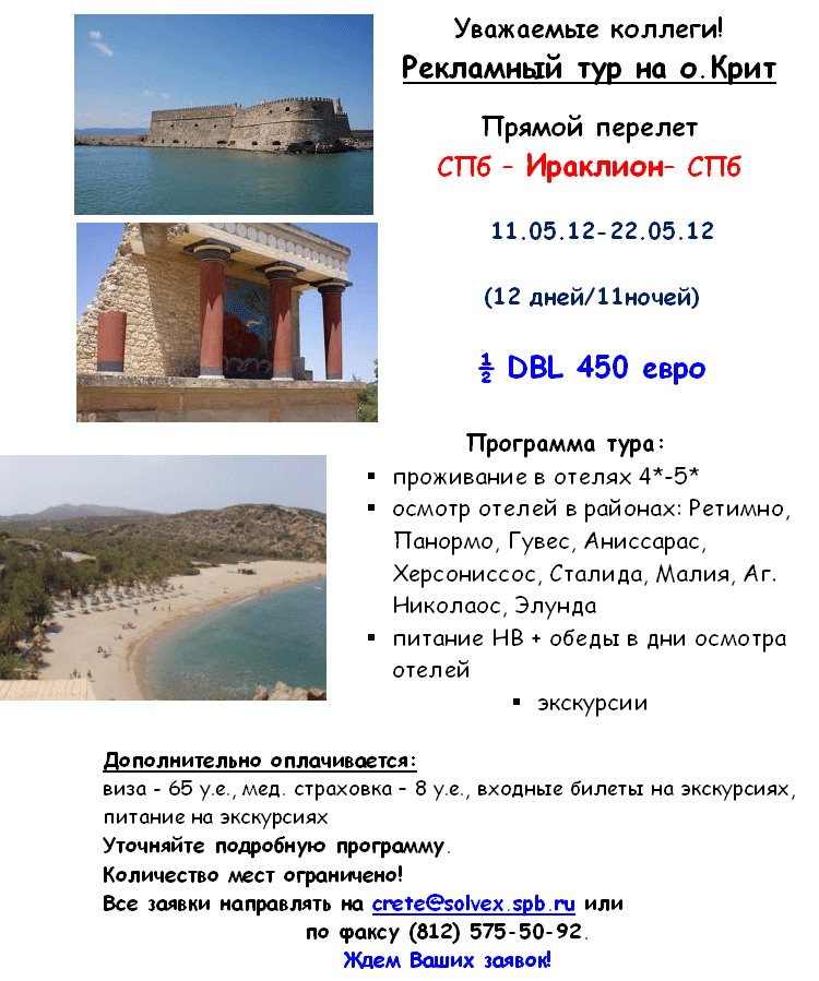 20 Мар 2012 13:31:06 ГРЕЦИЯ КРИТ 11.05 -22.05 Рекламный тур от фирмы СОЛВЕКС