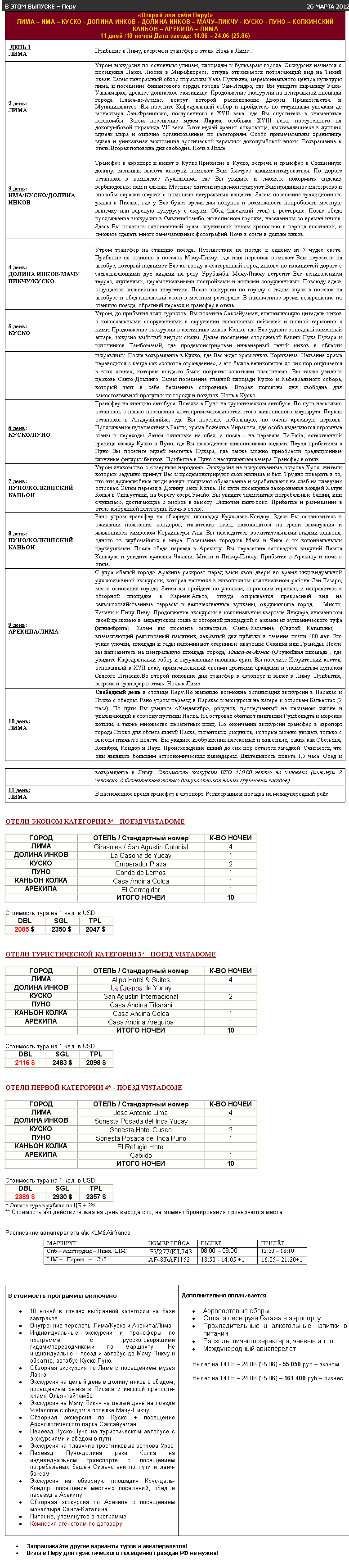 26 Мар 2012 16:42:19 ПЕРУ Путешествие в Перу 14.06-24.06 за 116 тыс.руб весь тур\рус.гид от фирмы ISOLE TRAVEL SERVICE