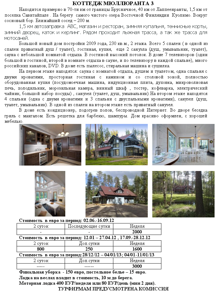 26 Мар 2012 17:33:26 ФИНЛЯНДИЯ. Коттдж Мюллюранта 3. Цены на 2012г и на Встречу Нового 2013 года. от фирмы ЦБПИЭ КОНЮШЕННАЯ