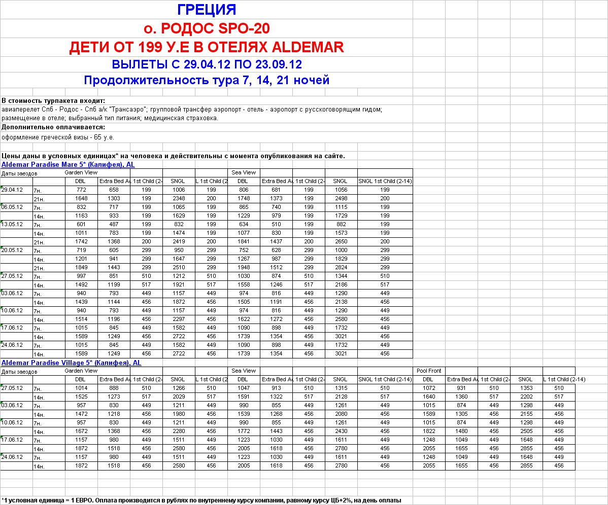 ГРЕЦИЯ - РОДОС СКИДКИ НА ОТЕЛИ ALDEMAR ДЕТИ ОТ 199 У.Е. от фирмы ЮЖНЫЙ КРЕСТ |