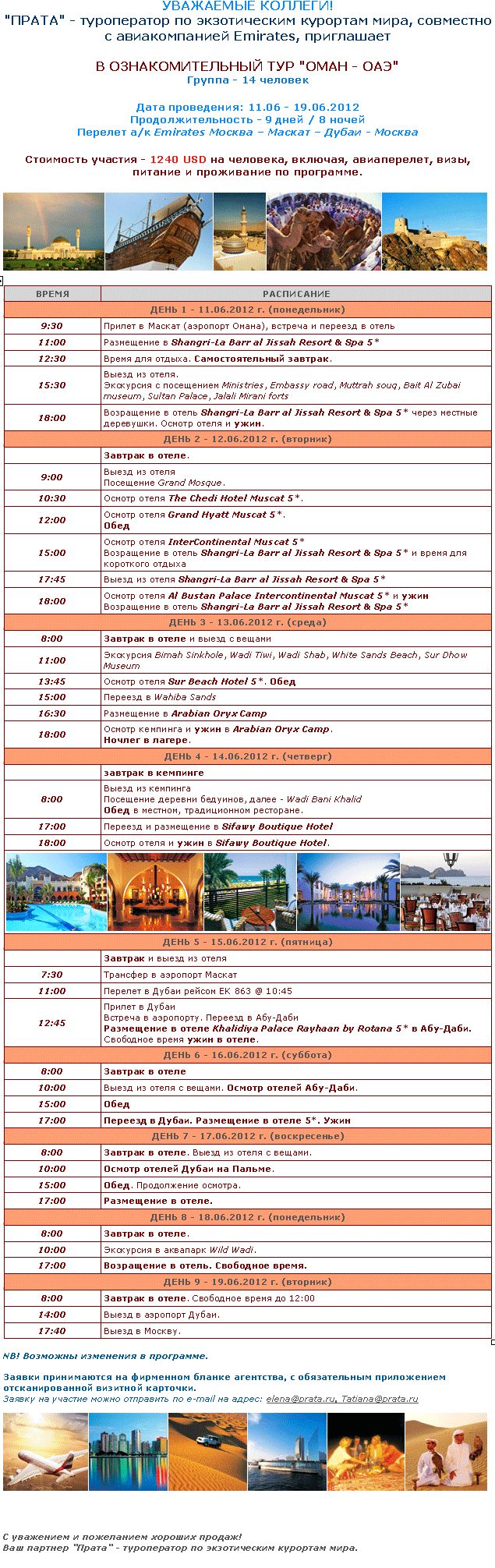 ОМАН-ОАЭ 11.06-19.06 РЕКЛАМНЫЙ ТУР от фирмы ПРАТА |