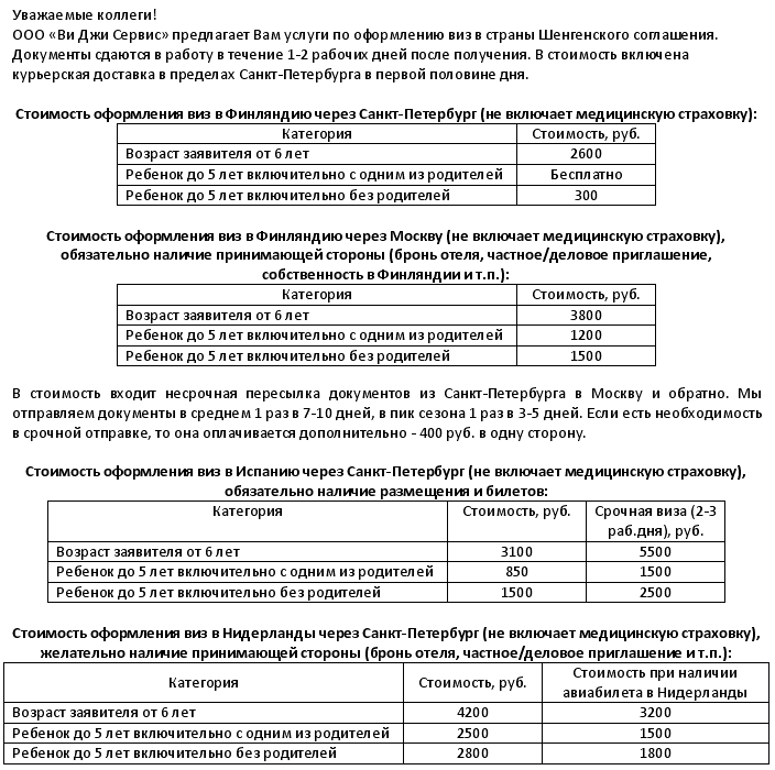 ОФОРМЛЕНИЕ ШЕНГЕН ВИЗ - Финляндия, Испания, Нидерланды от фирмы ВИ ДЖИ СЕРВИС |