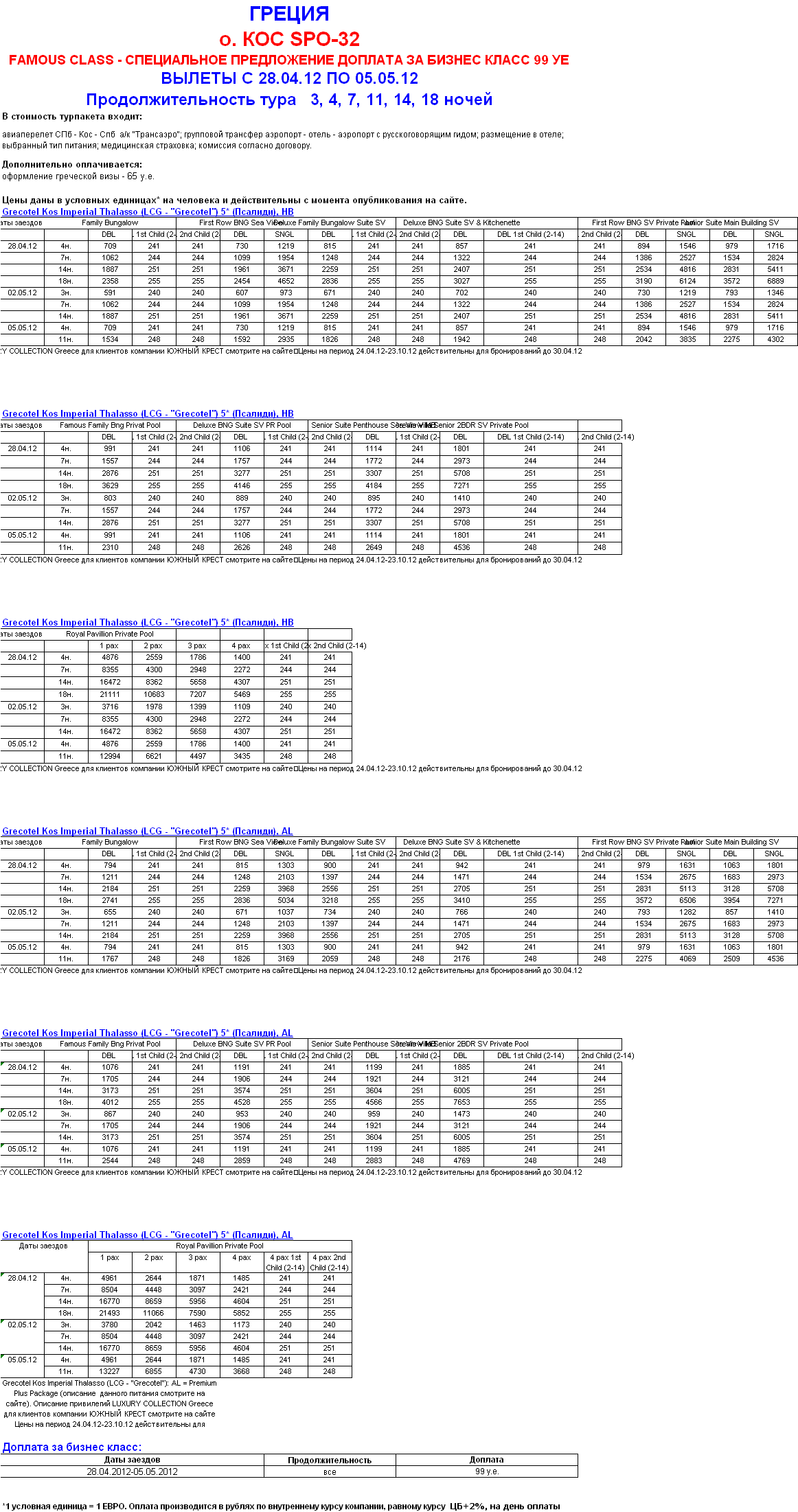 ГРЕЦИЯ - КОС GRECOTEL KOS IMPERIAL FAMOUS CLASS ДОПЛАТА ЗА БИЗНЕС КЛАС 99 У.Е. от фирмы ЮЖНЫЙ КРЕСТ |