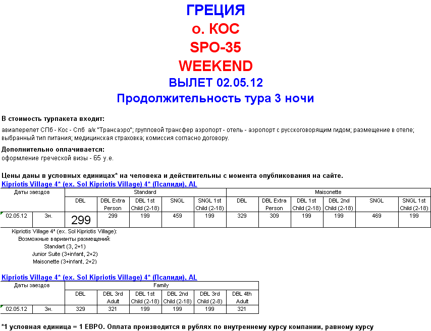ГРЕЦИЯ -КОС ВЫЛЕТ 02 МАЯ WEEKEND ОТ 299 У.Е. от фирмы ЮЖНЫЙ КРЕСТ |
