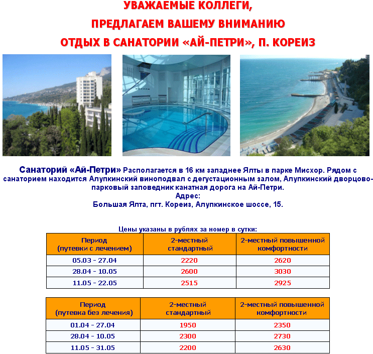 24 Апр 2012 13:25:53 КРЫМ - сан. АЙ-ПЕТРИ в МАЕ, Цены на сезон 2012 от фирмы ЭКСПОТУР