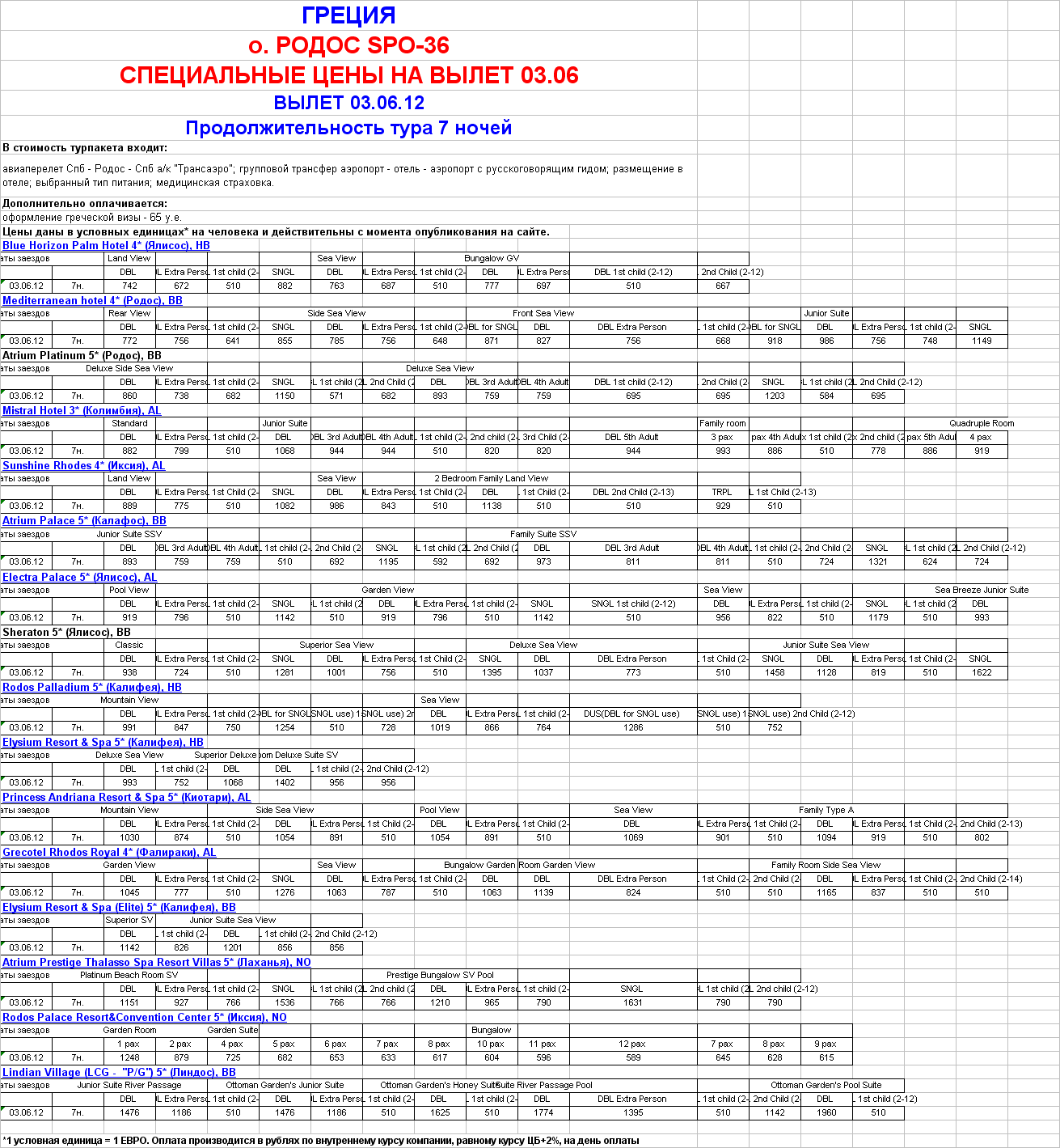 ГРЕЦИЯ - РОДОС СПЕЦИАЛЬНЫЕ ЦЕНЫ НА ВЫЛЕТ 03 ИЮНЯ от фирмы ЮЖНЫЙ КРЕСТ |