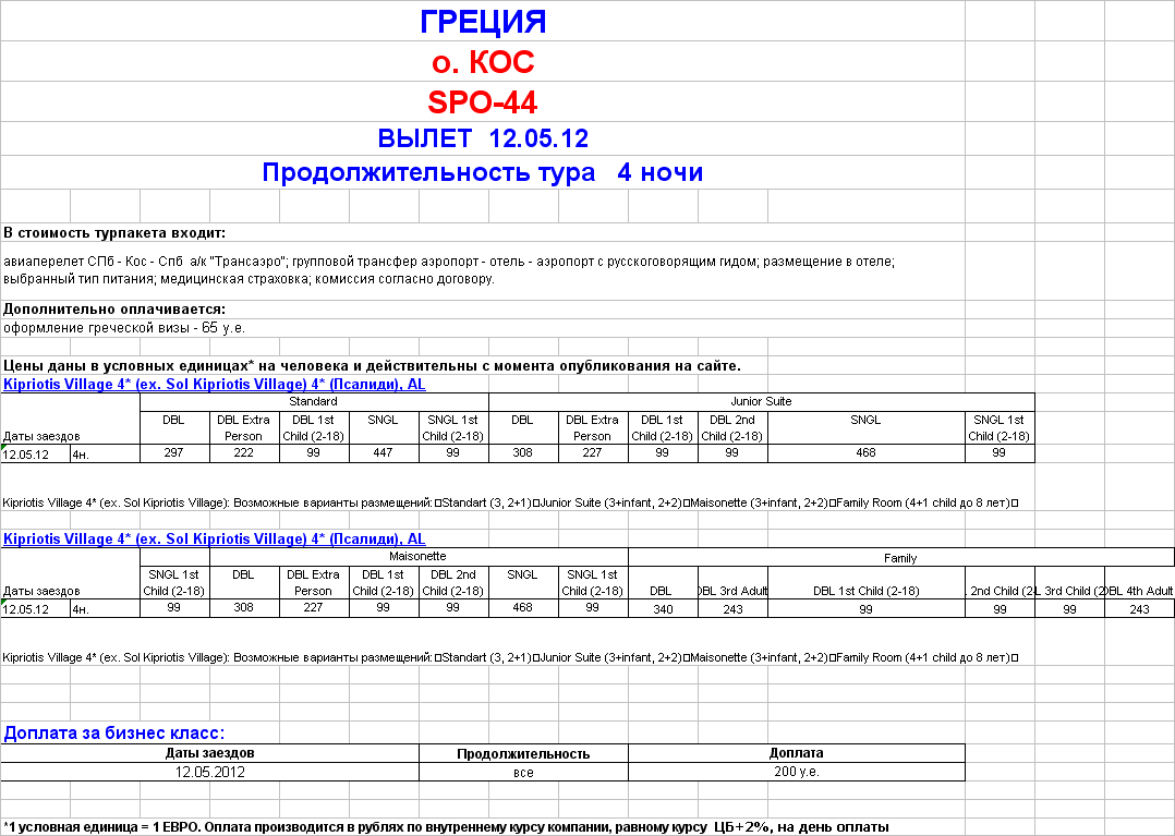 ГРЕЦИЯ - КОС ВЫЛЕТ 12 МАЯ WEEKEND ОТ 297 У.Е. от фирмы ЮЖНЫЙ КРЕСТ |