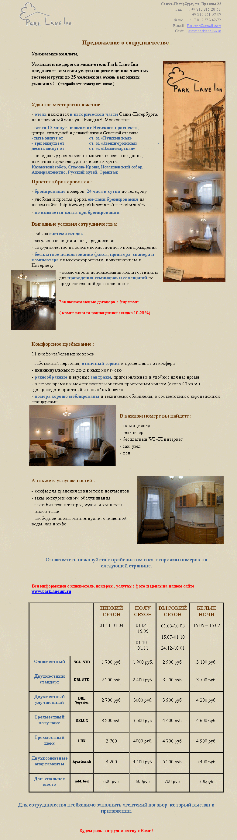 04 Май 2012 13:56:15 РОССИЯ - СПб - РАЗМЕЩЕНИЕ от фирмы МИНИ-ОТЕЛЬ PARK LANE INN