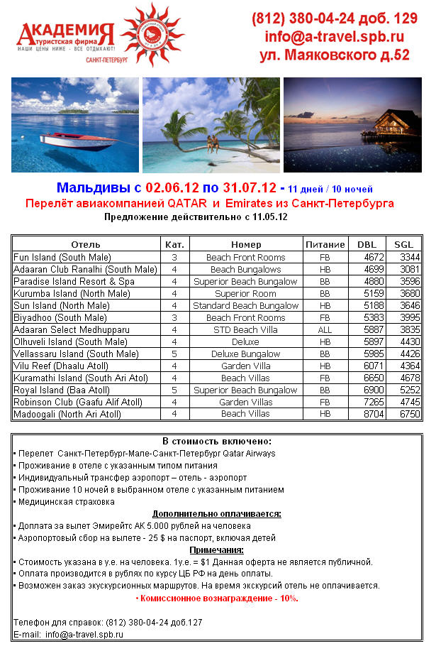 11 Май 2012 15:35:43 МАЛЬДИВЫ от фирмы АКАДЕМИЯ