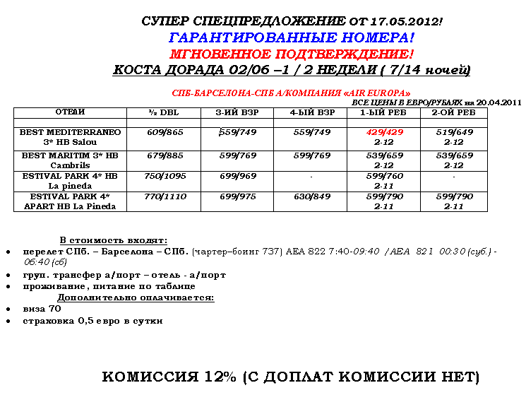 17 Май 2012 18:57:05 ИСПАНИЯ - КОСТА ДОРАДА 02.06 на 1/2 нед от фирмы АКАДЕМИЯ