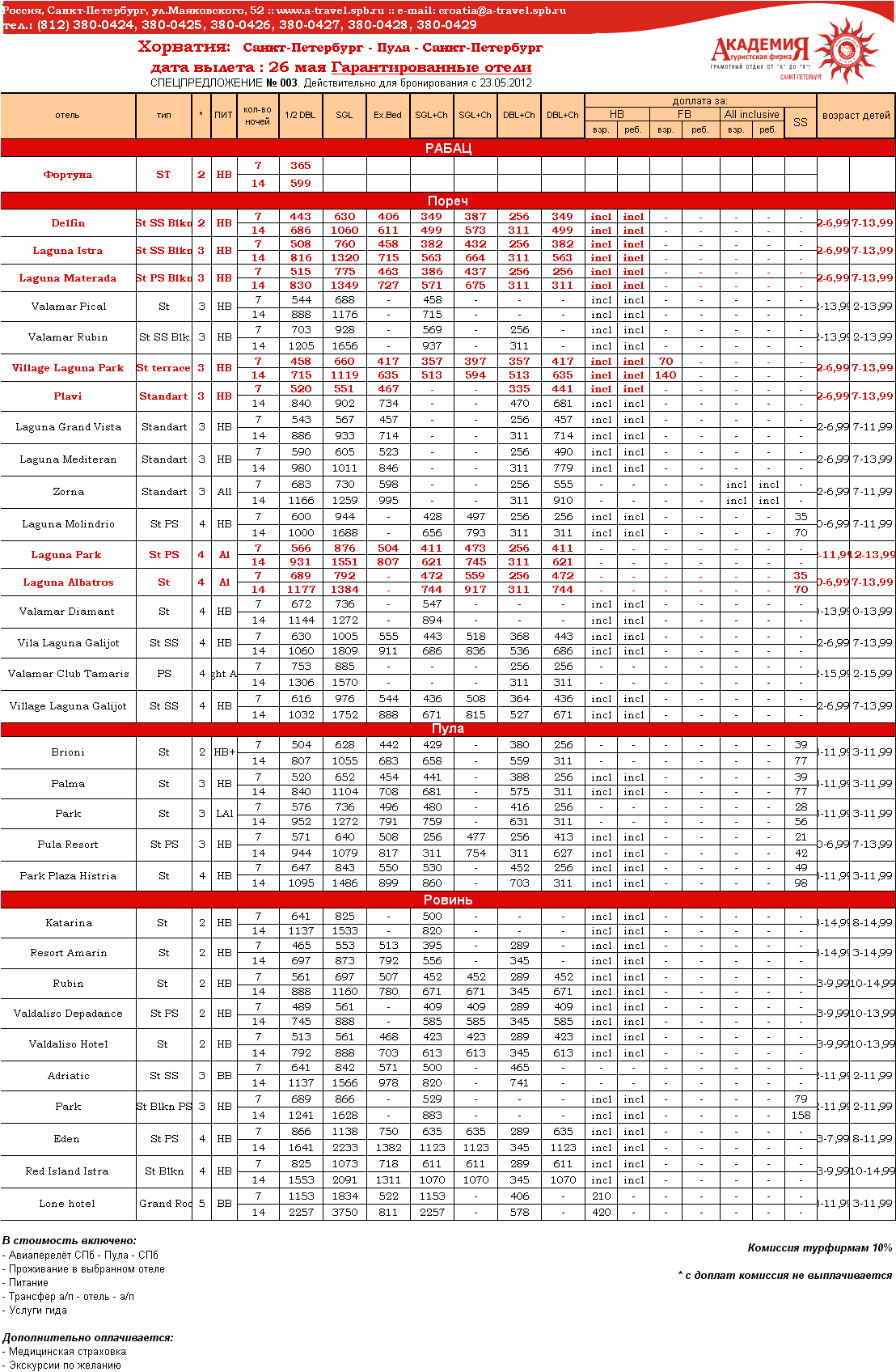23 Май 2012 11:22:39 ХОРВАТИЯ, полуостров Истрия (Пула) 26.05 неделя, 2 недели. Последние места от фирмы АКАДЕМИЯ