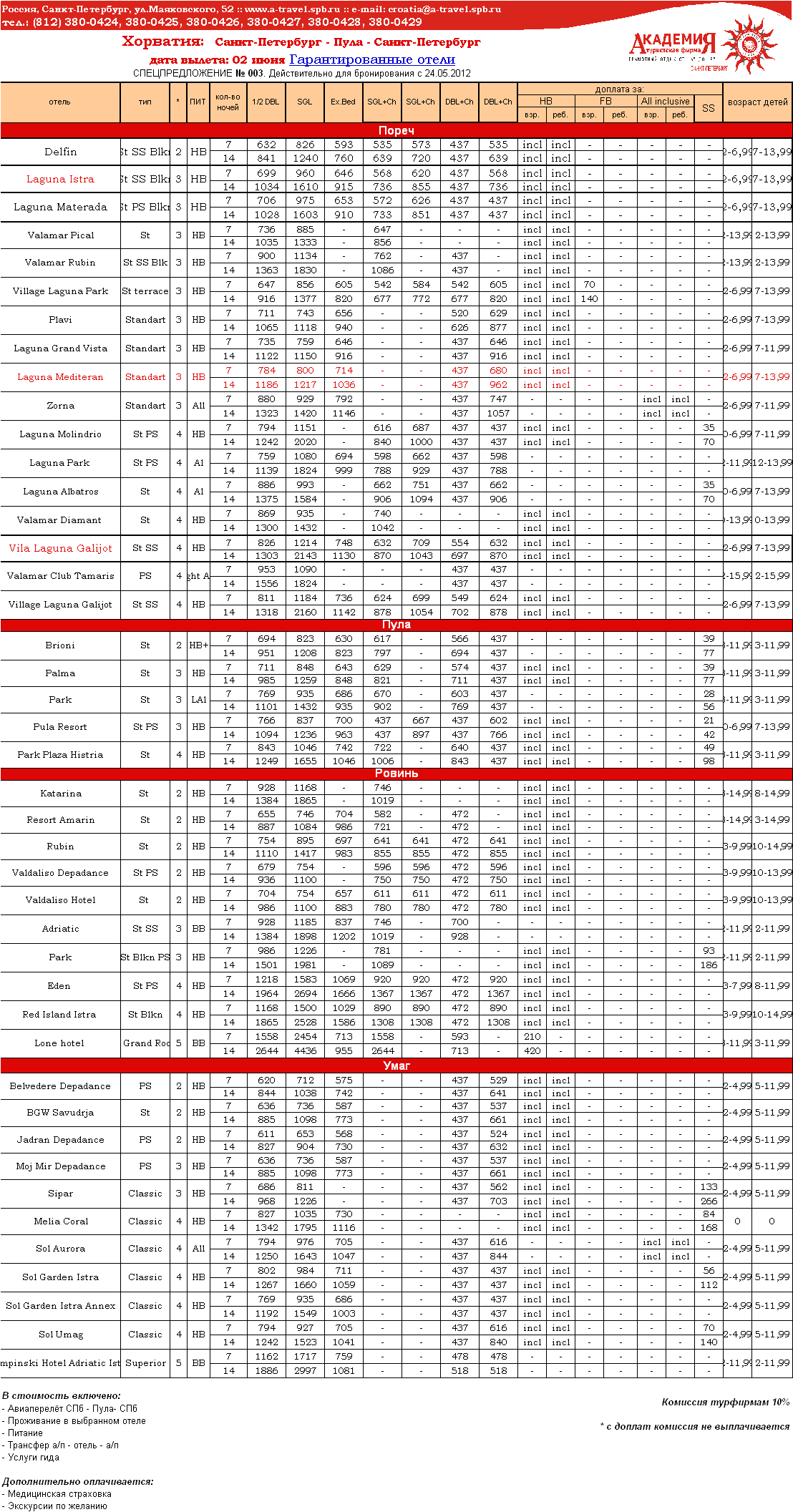 24 Май 2012 13:46:02 ХОРВАТИЯ,ПОЛУОСТРОВ Истрия (Пула) 02.06 на 1 / 2 нед. от фирмы АКАДЕМИЯ