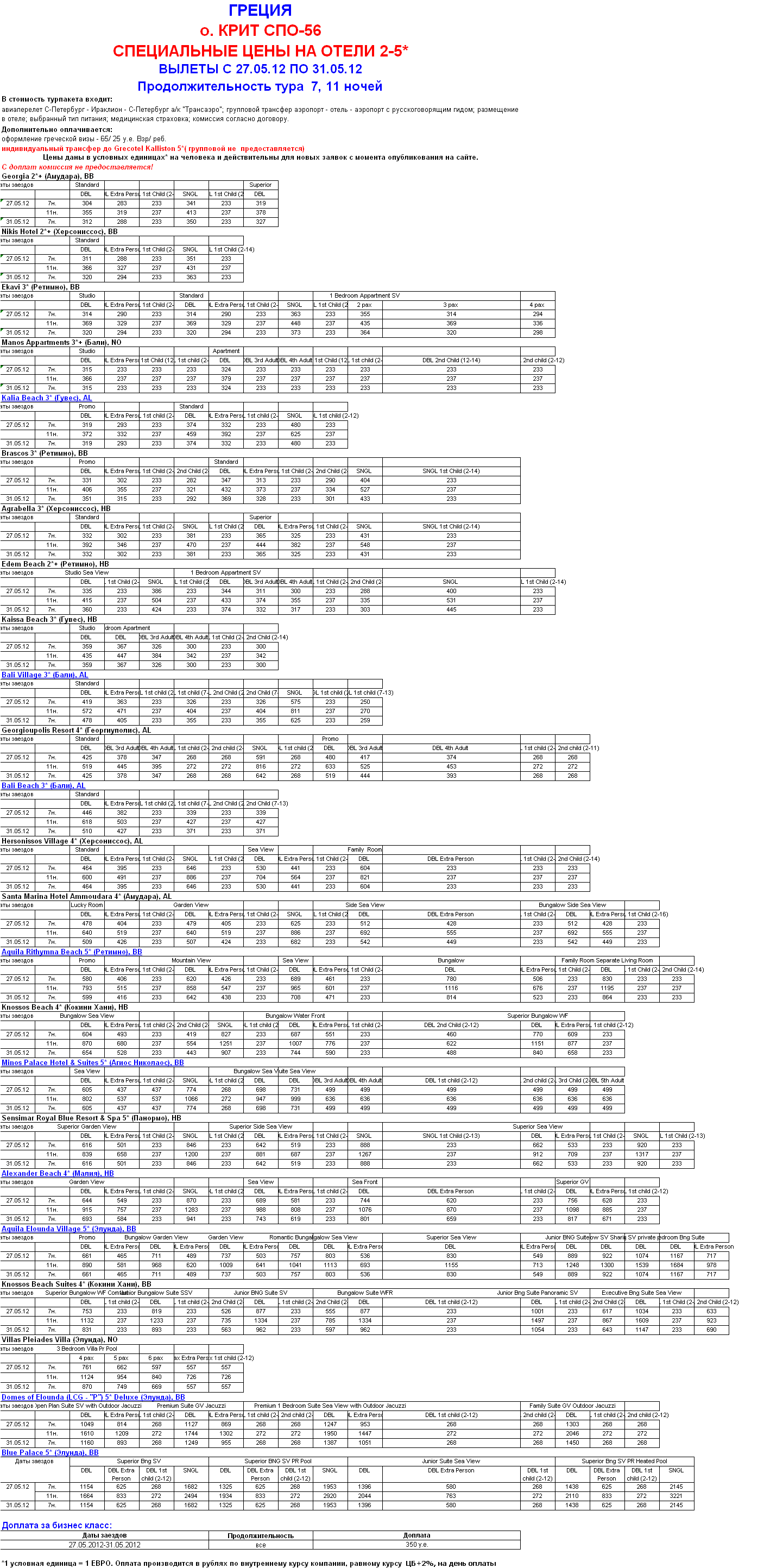 ГРЕЦИЯ КРИТ ВЫЛЕТЫ В МАЕ ОТ 304 У.Е от фирмы ЮЖНЫЙ КРЕСТ |