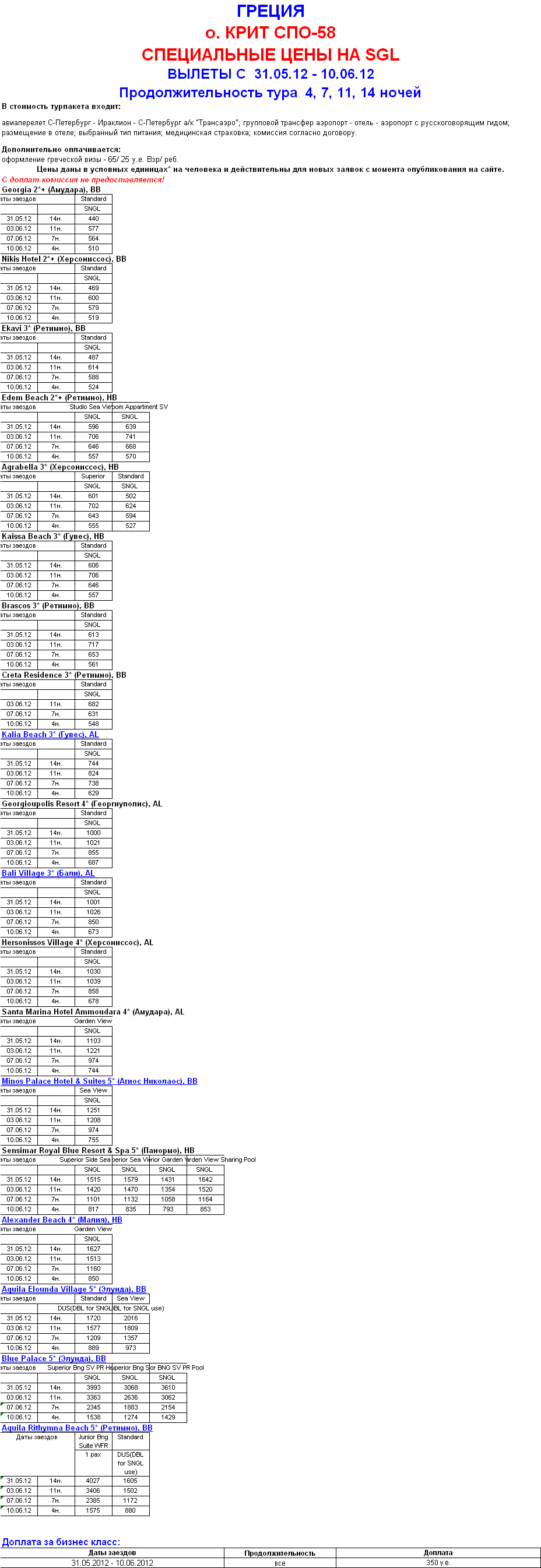 ГРЕЦИЯ - КРИТ СПЕЦИАЛЬНЫЕ ЦЕНЫ НА SGL от фирмы ЮЖНЫЙ КРЕСТ |
