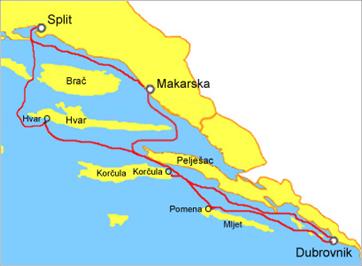 БРАЧ - МАКАРСКА - КОРЧУЛА – ДУБРОВНИК - МЛЕТ– ХВАР –