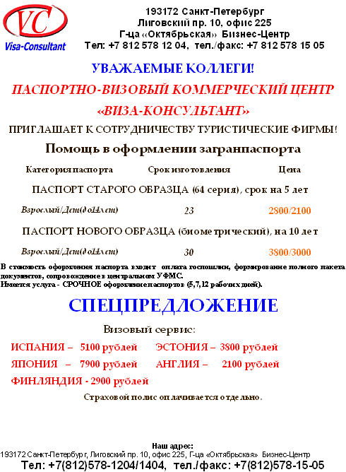 28 Май 2012 18:49:07 ОФОРМЛЕНИЕ паспортов и виз, СПО от фирмы ВИЗА-КОНСУЛЬТАНТ