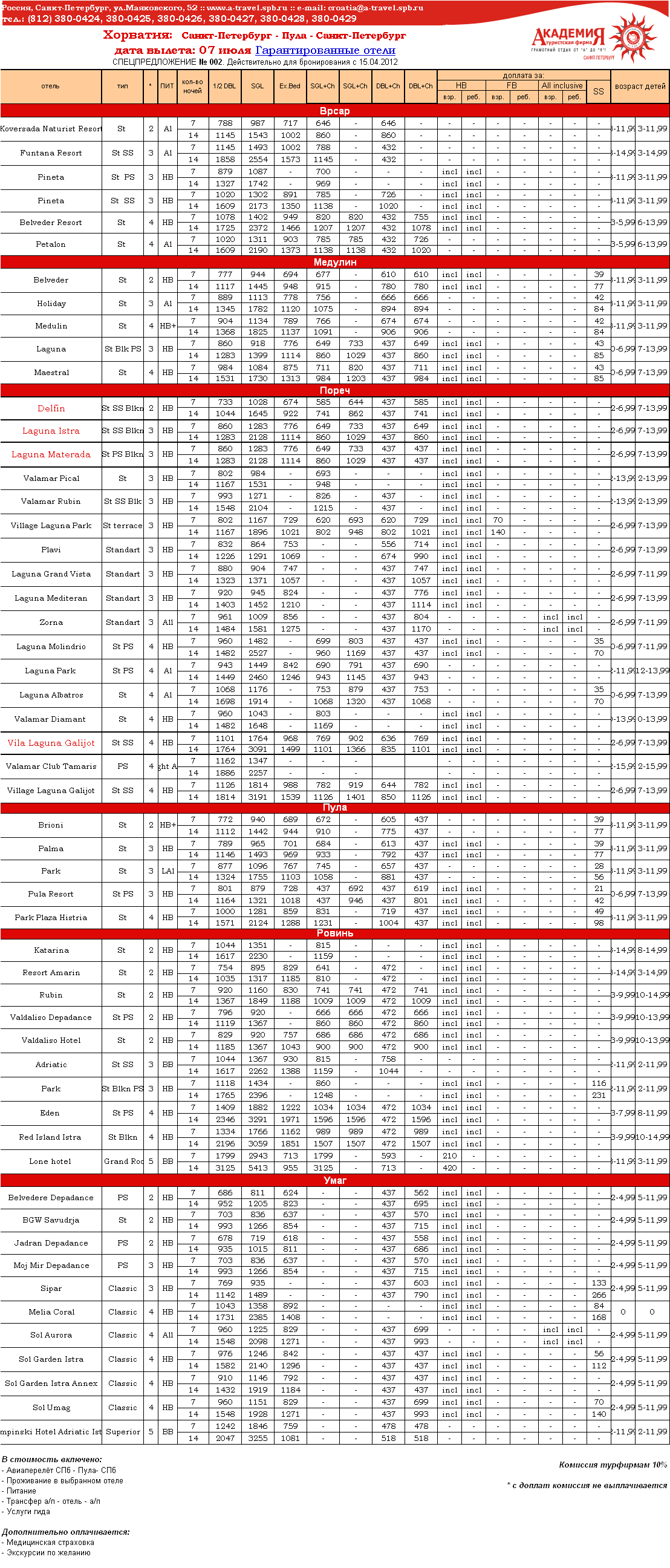 19 Июн 2012 12:54:50 ХОРВАТИЯ 07.07 ИСТРИЯ 7, 14 ночей Гарантированные отели от фирмы АКАДЕМИЯ