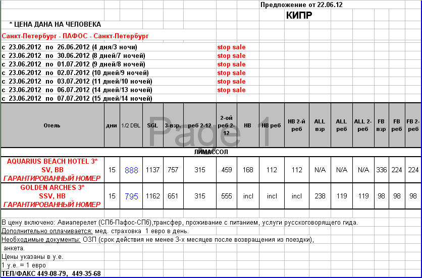 22 Июн 2012 12:30:42 КИПР (Пафос) ЦЕНЫ СНИЖЕНЫ 23.06 Гарант. номера от фирмы ФОРОС