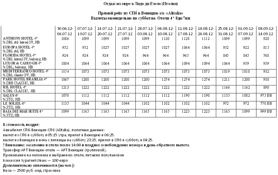 22 Июн 2012 13:36:26 ИТАЛИЯ - Отдых на море в Лидо ди Езоло, еженедельно по субботам от фирмы МИТРА-ТУР