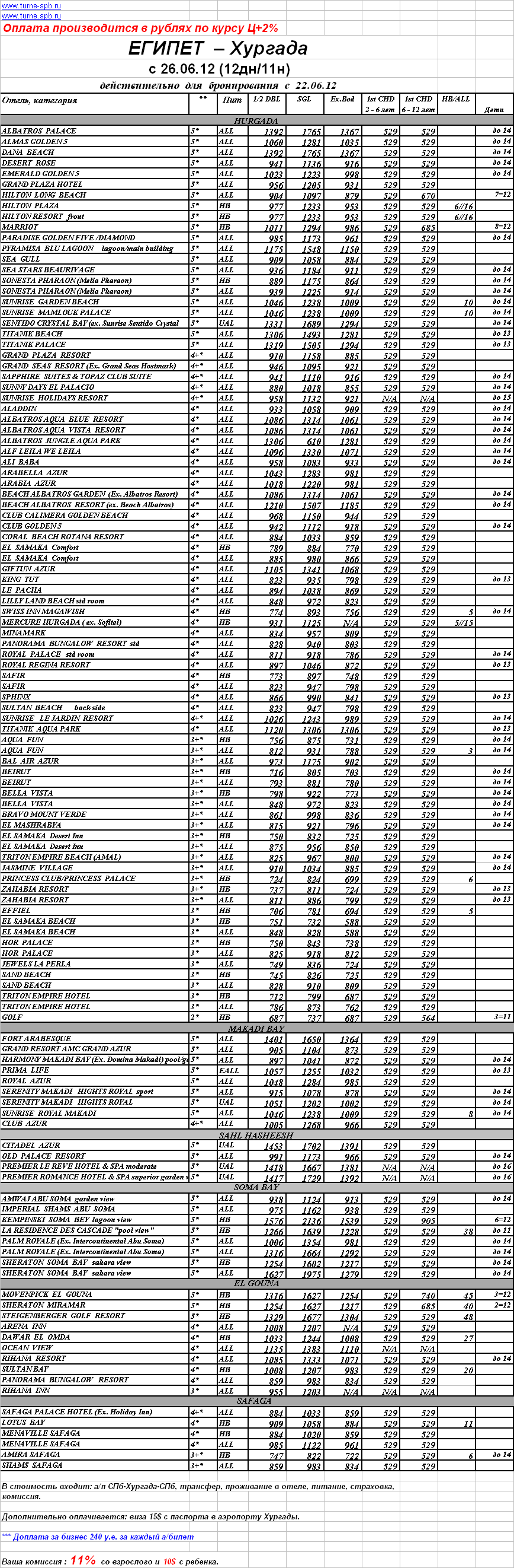 22 Июн 2012 13:48:44 ЕГИПЕТ. Хургада 26.06.12 (12дн/11н) от фирмы ТУРНЕ