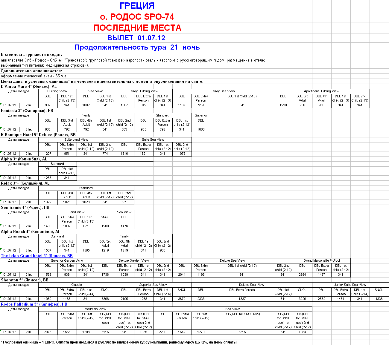 ГРЕЦИЯ - РОДОС ВЫЛЕТ 01 ИЮЛЯ ПОСЛЕДНИЕ МЕСТА НА 21 НОЧЬ от фирмы ЮЖНЫЙ КРЕСТ |