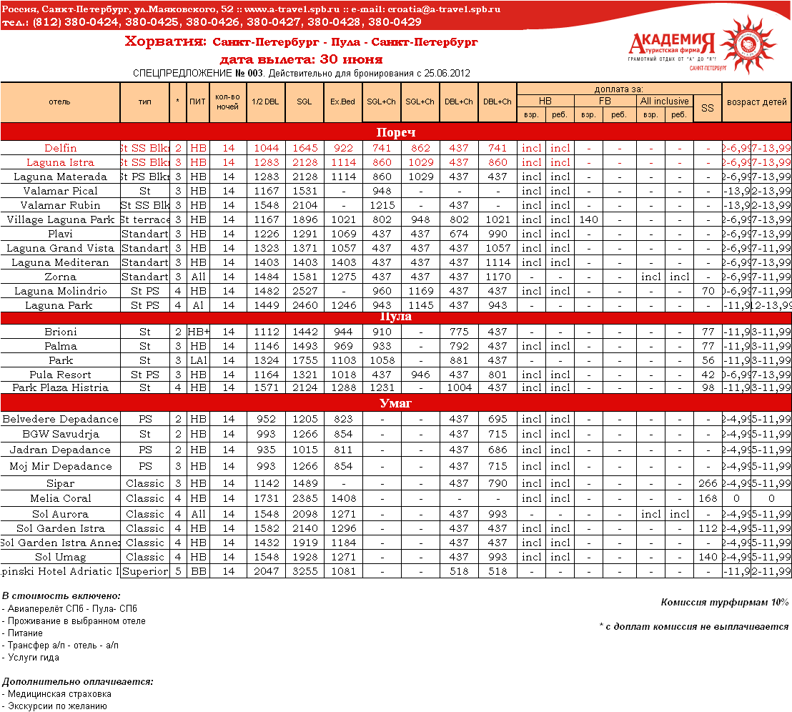 26 Июн 2012 12:52:46 ХОРВАТИЯ 30.06 ИСТРИЯ 14 ночей от Академии от фирмы АКАДЕМИЯ