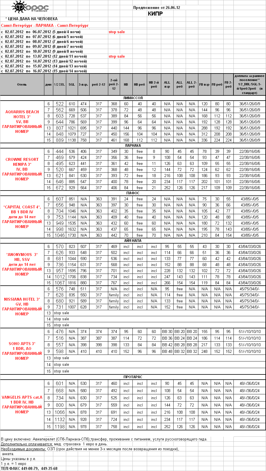 КИПР НОВОЕ СПО на 02.07 ЦЕНЫ СНИЖЕНЫ от фирмы ФОРОС |
