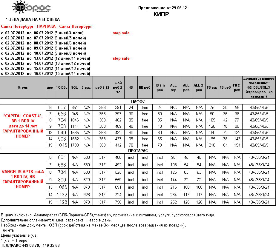КИПР СПО на 02.07 от фирмы ФОРОС |