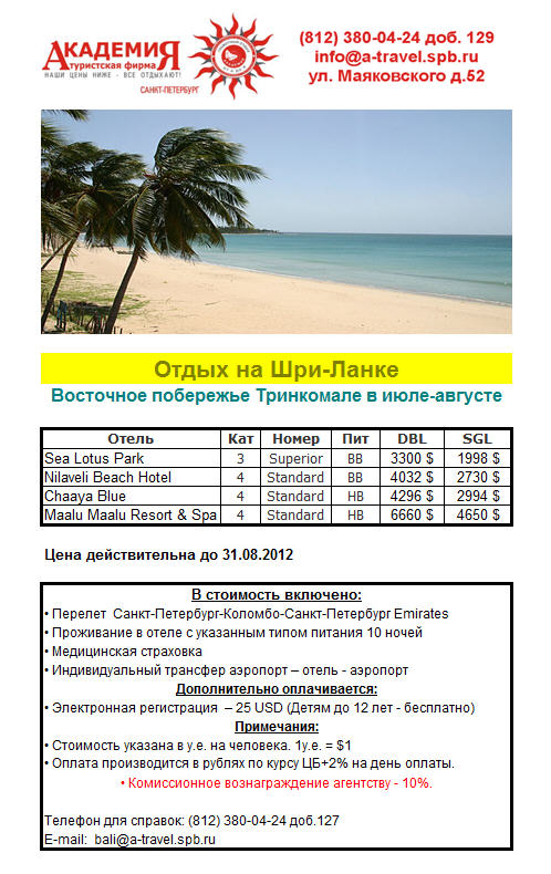 03 Июл 2012 11:26:19 ШРИ-ЛАНКА Отдых в Тринко июль-август от фирмы АКАДЕМИЯ