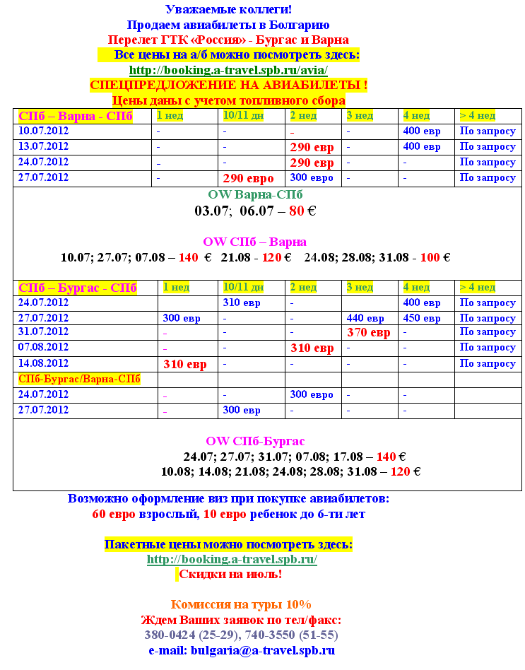 03 Июл 2012 11:41:10 БОЛГАРИЯ, ИЮЛЬ, авиабилеты от 80 евро от фирмы АКАДЕМИЯ