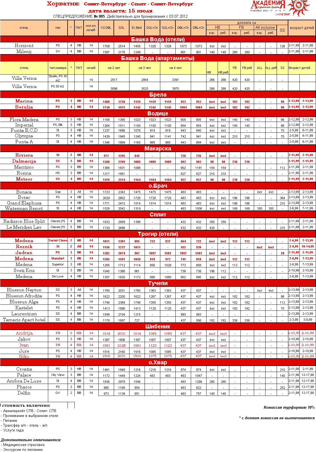 03 Июл 2012 12:11:25 ХОРВАТИЯ, СПЛИТ 15,07 на 14 ночей от фирмы АКАДЕМИЯ