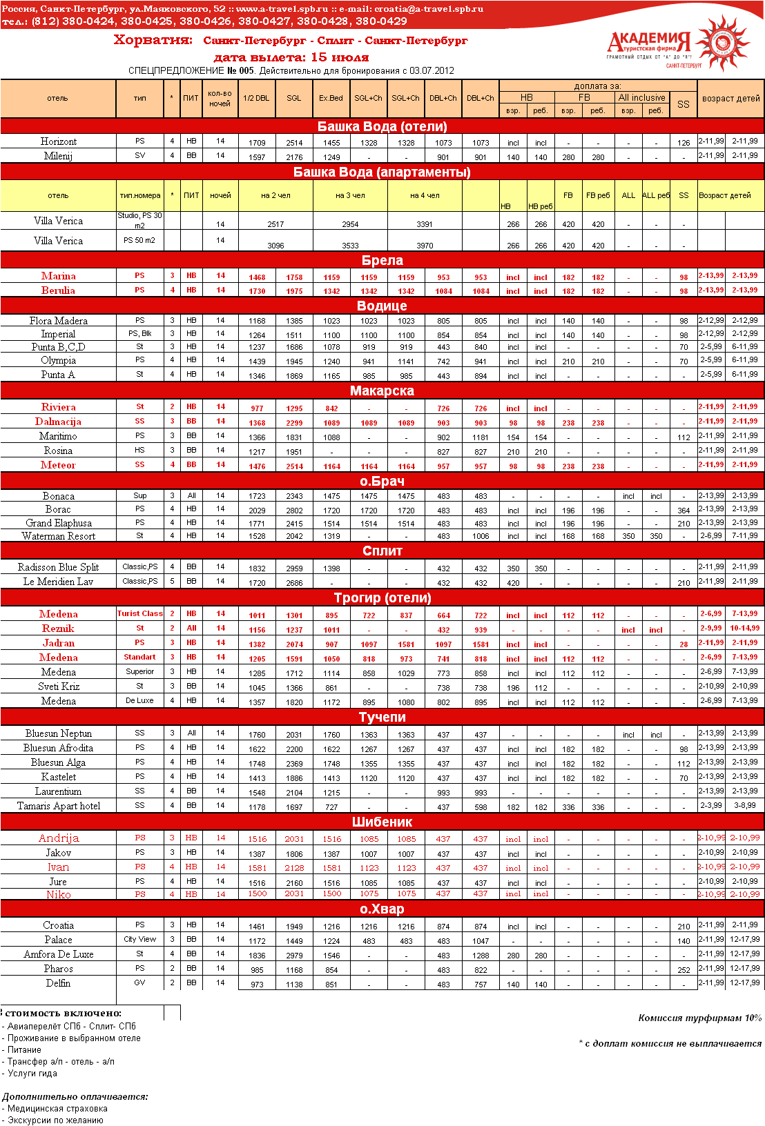 04 Июл 2012 13:45:08 ХОРВАТИЯ, СПЛИТ 15.07 на 14 ночей от фирмы АКАДЕМИЯ