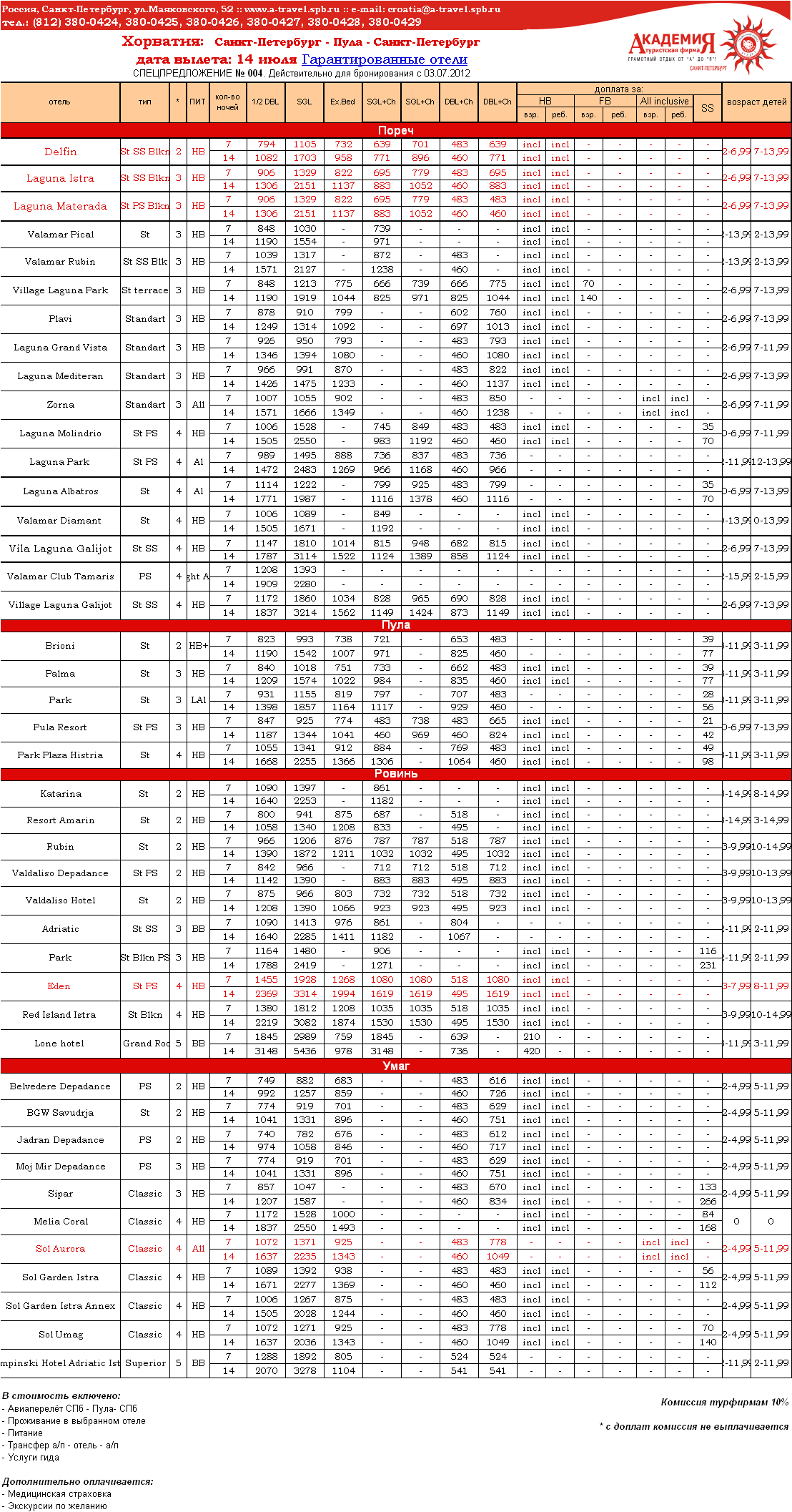 04 Июл 2012 13:46:31 ХОРВАТИЯ, ИСТРИЯ 14.07 на 7,14 ночей от фирмы АКАДЕМИЯ