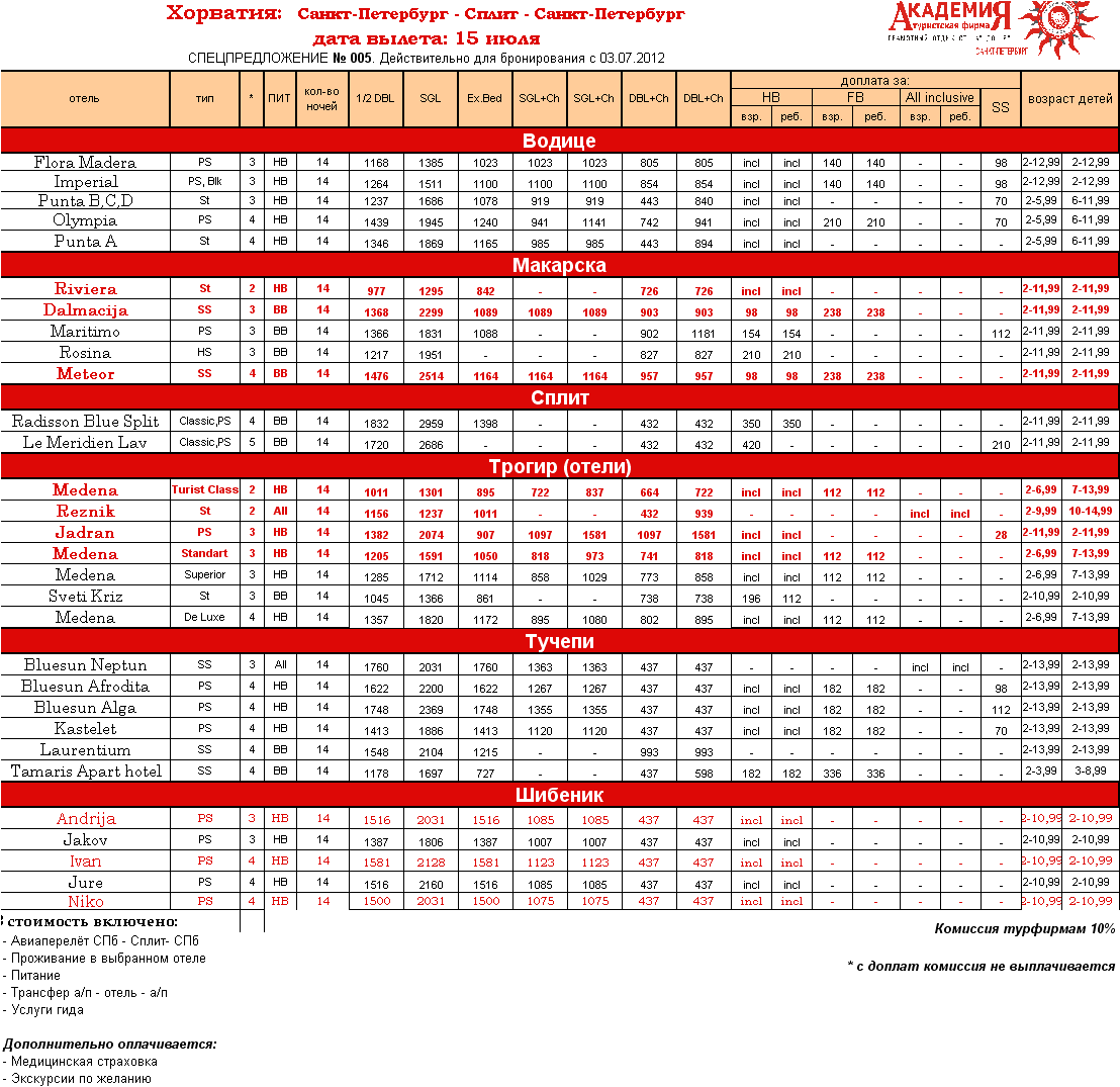 09 Июл 2012 13:26:14 ХОРВАТИЯ, СПЛИТ 15.07 на 14 ночей от фирмы АКАДЕМИЯ