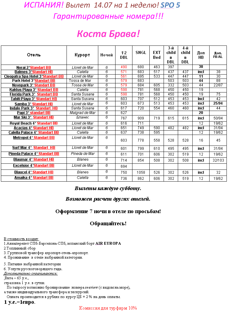13 Июл 2012 15:51:56 ИСПАНИЯ Коста Брава 14.07 на 1 неделю от 490 евро от фирмы ИВОЛГА